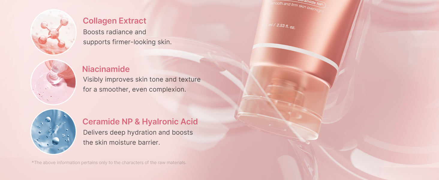 Wake up to visibly plumper, smoother skin. This collagen-rich night mask works while you sleep to deeply hydrate and restore your skin's natural radiance.